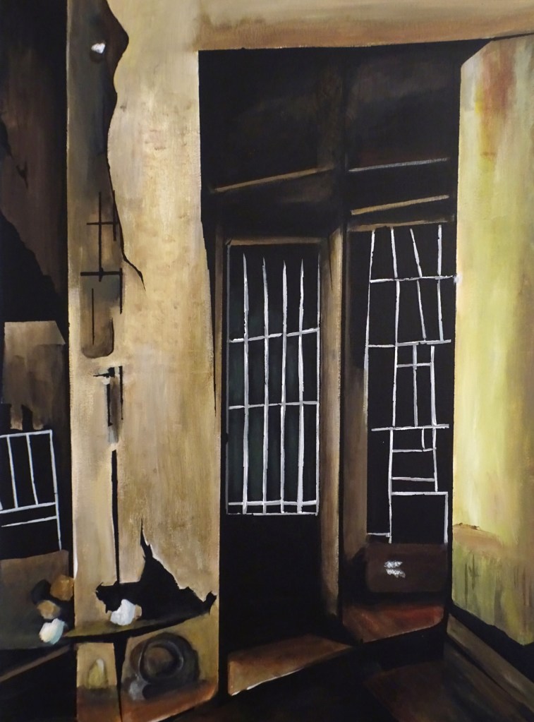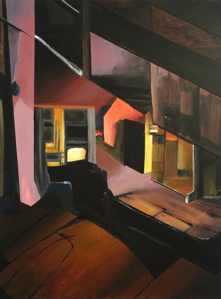 La création et la mise en œuvre de ces espaces psychique m’est apaisante, ils me font errer dans de nouveaux espaces distordus, intériorisés, bien loin des tumultes humains futiles, dans l’antichambre d’une terreur réconfortante et infondée.